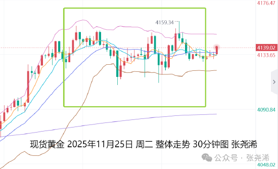 11月26日:上交易日周二(11月25日):国际黄金震荡十字收平,多头动力减弱,暗示有一定的回落走低预期,但下方均线支撑众多,基本面也缺乏明显且持续的利空压力,故此,如有回落,下方空间也是有限,关注下方中轨线等支撑位置,也是先行看涨为主。